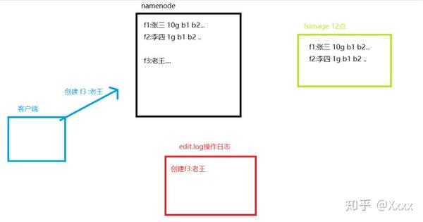 fsimage将元数据保存到磁盘. 然后每小时保存一次记录,因此当客户端操作在12:30创建旧国王时,f3文件信息出现在NameNode中,但是此时存在停机时间,请首先通过fsimage还原文件,但这一次是没有达到保存时间,因此文件为f3. 老王不存在. 如果是12:30创建老王的客户端操作,则首先将操作日志保存到. 在editlog中,将其保存到名称节点. 如果此时已关闭,则首先将fsimage的磁盘数据还原到名称节点,然后阅读editlog,然后您需要再次操作该日志. 将再次创建F3以完美解决它. 因此,只要将fsimage保存一次,就可以删除一次日志,否则日志将变得越来越大.