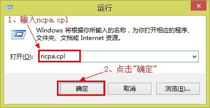 2. 在运行的程序中输入“ ncpa.cpl”,然后单击“确定”按钮以打开网络适配器配置页面.