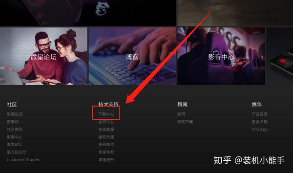 2. 进入官方网站界面后,将菜单下拉至末尾,单击[技术支持]菜单下的[下载中心];