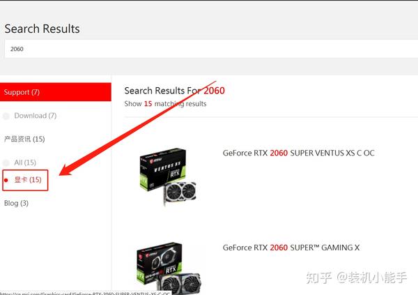 4. 点击[图形卡]查看搜索结果,找到GeForce RTX 2060 SUPER VENTUS OC,点击进入下一步;