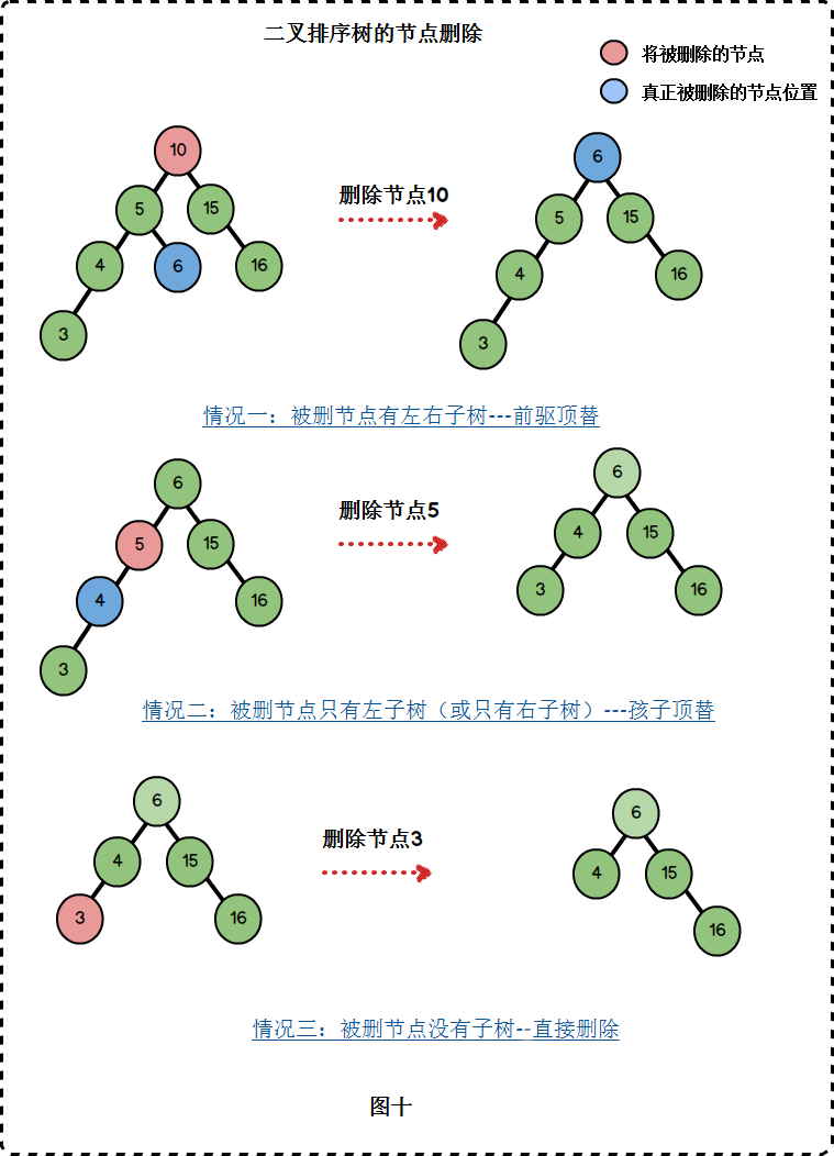 对于第一种情况,我们的处理方式是将前驱节点的值保存在当前结点,继而删除前驱节点。