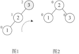 对于数组{3,2,1,4,5,6,7,10,9,8}的前两们3和2,我们很正常地构建,到了第3个数时“1”时,发现此时根结点“3”的平衡因子变成了2,此时整棵树都成了最小不平不平衡子树,因此需要调整,如图,结点左上角的数字为平衡因子BF。因为BF为正,因此我们将整个树进行右旋(顺时针旋转),此时结点2成了根结点,3成了2的右孩子这样三个结点的BF均为0。非常平衡如图2