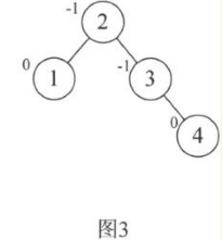然后我们再增加结点4,平衡因子没有超出限定范围,如图3
