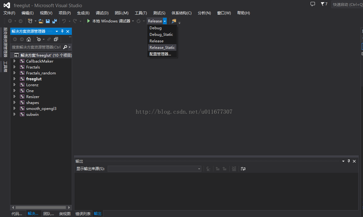 工具包中同样带有freeglut-2.8.1.tar.gz,解压后打开VS2013将里面的/VisualStudio/2012项目文件添加后选择Release_Static来