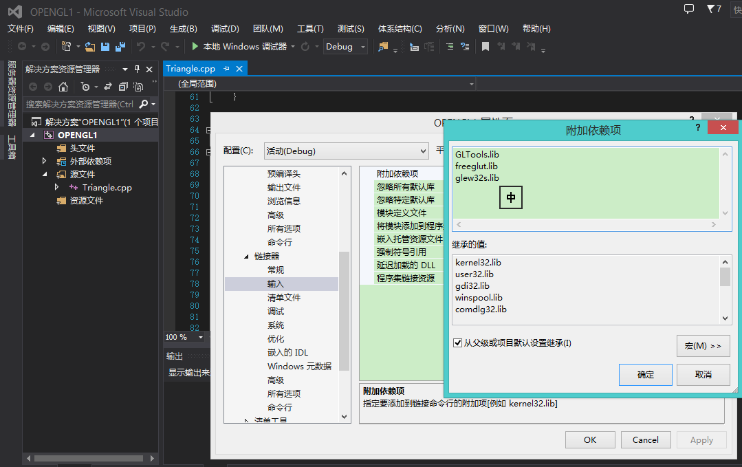 在VS2013中创建一个win32控制台程序,空项目,同时在项目页中的链接器的输入页面的附加依赖项中添加如下lib文件