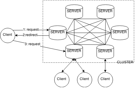 Client可以向任意节点发起请求,节点不会转发请求,只是重定向Client