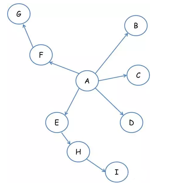 深度优先遍历策略是指网络爬虫会从起始页开始,一个链接一个链接跟踪下去,处理完这条线路之后再转入下一个起始页,继续跟踪链接。我们以下面的图为例:
