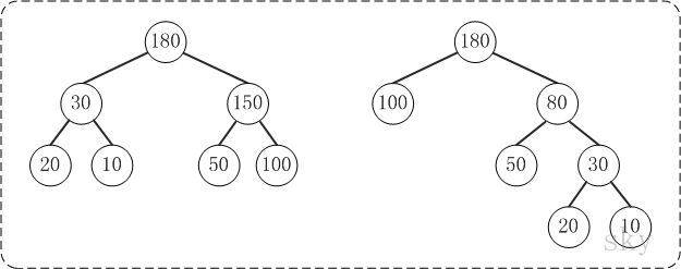 上面的两棵树都是以{10, 20, 50, 100}为叶子节点的树。
