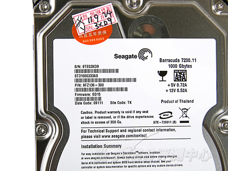 最新的希捷酷鱼1TB,单碟容量达334GB
