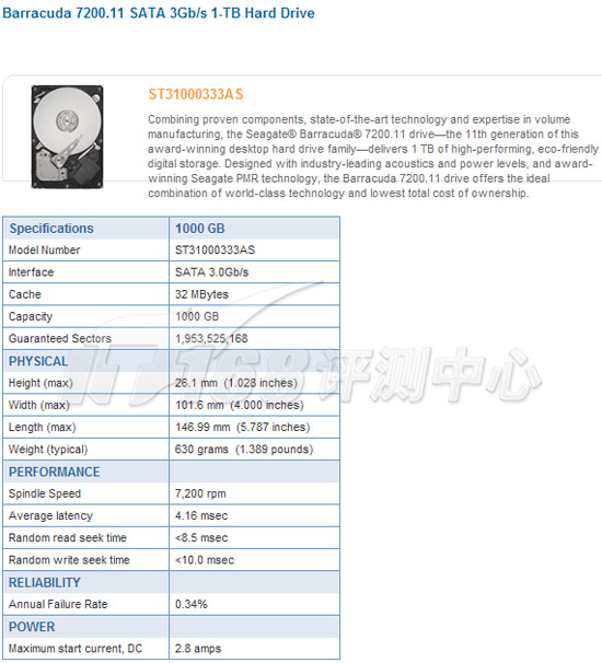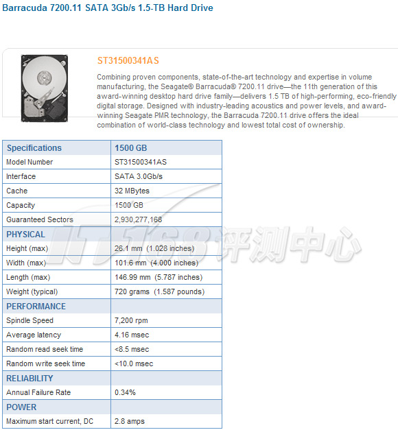 随着ST31000333AS在国内上市的希捷硬盘新品还有一款ST31500341AS,这款1.5TB硬盘基于375GB单碟容量,然而ST31000333AS却是基于334GB单碟容量。单碟1tbST31500341AS也是业界第一款1.5TB容量的硬盘,不过目前似乎只有美国新蛋有售,我们未来会对其进行评测。下面是它们的规格参数,最开始列出的是老款单碟250GB的1TB酷鱼: