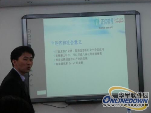 常州正佳软件总经理黄允聪接着做了《基于龙芯平台的行业管理软件应用现状及展望》的演讲,他首先提到在这里第一次接触到那么多对龙芯爱好者和开发者,非常的高兴。然后以自己的正佳行业管理软件为列子,表示了对打造龙芯产业联盟,推动龙芯在行业中的应用,推动民族核心信息技术的发展的信心和决心。