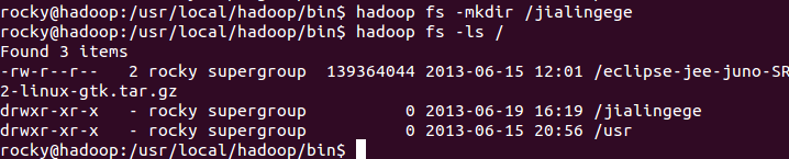 第二个常用命令:hadoop fs –mkidr
