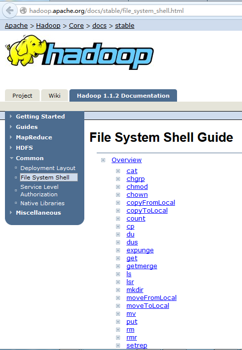 Hadoop文件系统更多的操作命令打开官方网站中文件系统的操作命令页面:
