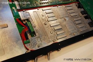 在计算节点中采用液冷(据说是使用500元1吨的纯净水)设计也是神威蓝光的一大技术特色,中间是铝制液冷散热板