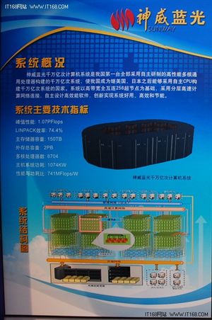 神威系统每秒能进行约1千万亿次运算,很可能排在世界最快的20台计算机之列。更为重要的是,该系统采用的8700片申威1600微处理器是由本国的一家计算机研究所设计、在上海制造的。
