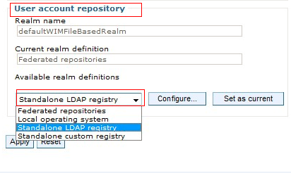 4.2 点击‘Configure’去配置标准LDAP注册表,并且记得在配置成功后返回到此页面,点击‘Set as current’。