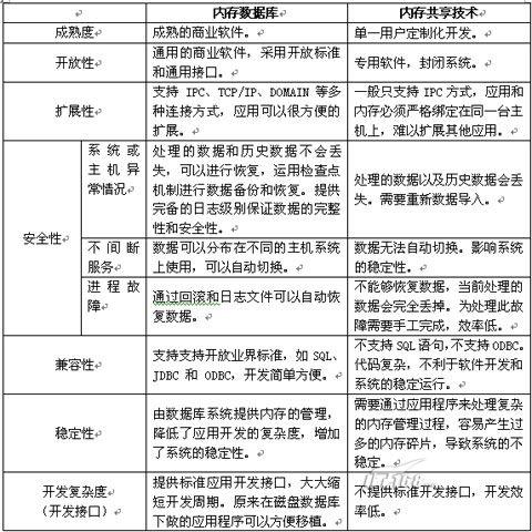 而使用共享内存技术的实时系统和使用内存相比有很多不足,由于优化的目标仍然集中在最小化磁盘访问上,很难满足完整的管理的要求,设计的非标准化和软件的专用性造成可伸缩性、可用性和系统的效率都非常低,对于快速部署和简化维护都是不利的。
