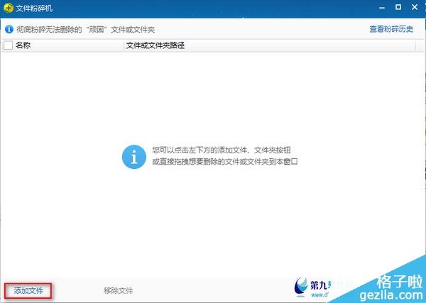 打开文件粉碎机后,我们发现里面是空白的,那么就需要我们点击左下方的“添加文件”
