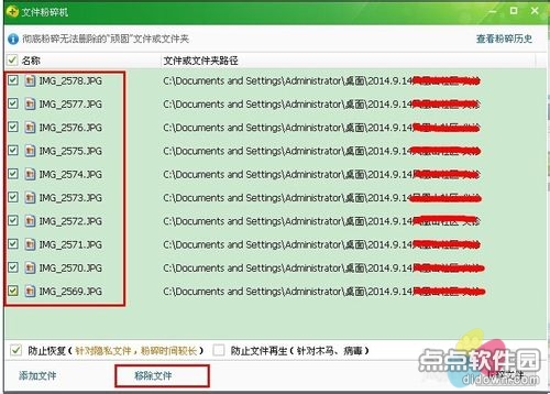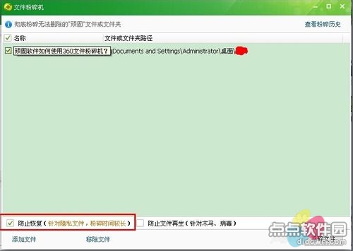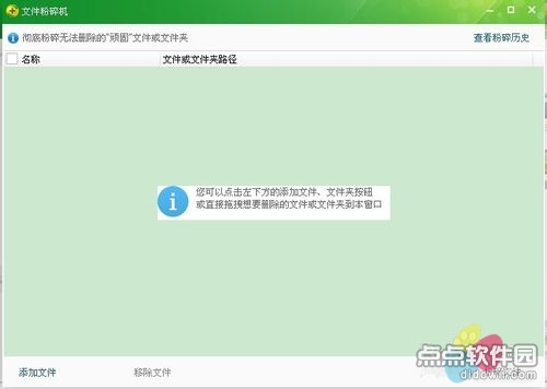 点击“添加文件”选择需要粉碎的文件,之后,如果有选择错误的文件,可以勾选此文件,点击“移除文件”,就可以避免被误删。360粉碎机在哪里