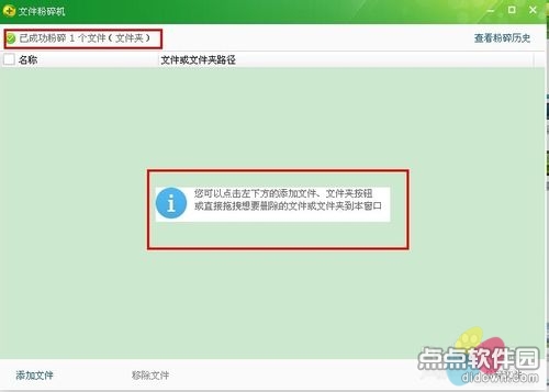 如果还有想粉碎的文件,可以点击“添加文件”选择需要粉碎的文件,点击“粉碎文件”。