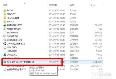 3.接下来就是开始安装了,下面直接双击下载好的镜像文件,在出现的对话框里面双击ONEKEY_GHOST安装器。