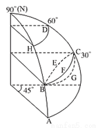 2.上图中,A、B之间的经线长度与D、H之间的纬线长度相比( )