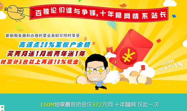 中国稳网(wendns.com)隶属于温州稳网信息技术,是一家近十年历程的IDC老品牌,该公司历吏驱动引发行业争议的事件不少,2008年,在100M虚拟主机行业价格基本为二三百元一年的时候,直接将同类主机降至30元一年,迅速在业内出名。2009年,在普通共享服务器租用价格还停留在上千元一月的情况下,直接将价格降至399元月。又对行业产生了重大的打击。直逼整个行业降价。2010年的,在百独大带宽行业,更是轮翻轰炸,行业价格百独均价在1.5K-2K之间月,中国稳网直接以百兆服务器租用899元的价格而闻名站长业。稳网百兆服务器租用,百兆稳网服务器用,稳网大带宽一度成为百度的热门相关搜索关键字。在大带宽如此低廉的情况下。整个行业受到撼动。到2014年,全网几呼是百的百独服务器产品。2014年中询,稳网又上线699元月的最百独服务器租用价。一直占据大带宽市场的价格优势。然后四月初,中原地区一家IDC同样宣布百独最低699元月,本月,稳网再次启动“百独论价,谁与争峰”专项优惠活动。从此看来,双方打价格战的嫌疑已经完全暴露。无论如何,这对整个IDC行业都是一种巨大的冲击。抵或,IDC带宽市场又将被糟蹋成白菜价。但对站长和企业说,就是一个喜讯。甚至无法相信自已有没有看错这个价格。