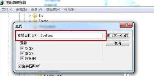 在弹窗的“查找”输入框中输入:Scaling,然后点击“查找下一个”