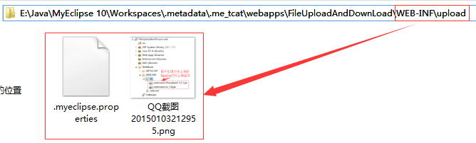 文件上传成功之后,上传的文件保存在了WEB-INF目录下的upload目录,如下图所示: