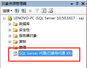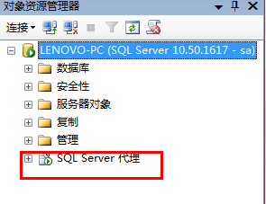 观察"对象资源管理器"中的"SQL Server代理"