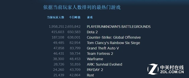 Steam玩家人数排行
