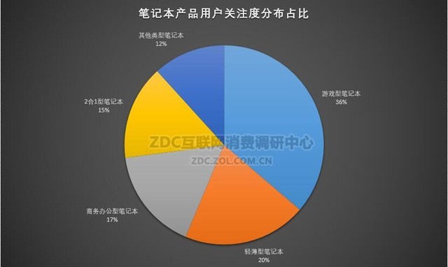 笔记本产品用户关注度分布占比