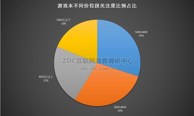 2017年消费者最关注的游戏本价位段虽然仍是5000-6000元,但对比去年下降了2.2%,而6000元以上的中高端以及高端产品的关注度却获得了明显的提升,尤其是6000-8000元区间上升了多达7.6%,这不仅是因为各大厂商的游戏本主打型号价格具有一定的上浮,也受到了主流游戏配置需求上涨的影响。
