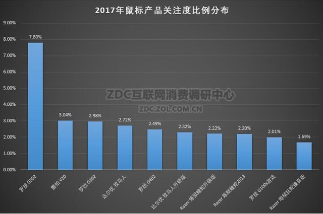 在以往的外设行业中,机械键盘的关注度要比鼠标的关注度高一些,这也是近年来电竞游戏行业大热所导致的,机械键盘也是近年来才重新发展起来的,而2017年由于FPS类游戏的增多,对于鼠标的要求远比MOBA类游戏要高,所以玩家们也将一部分注意力从机械键盘上,转移到了的游戏鼠标,所以这也是2017年游戏鼠标关注度大幅提升的主要原因。