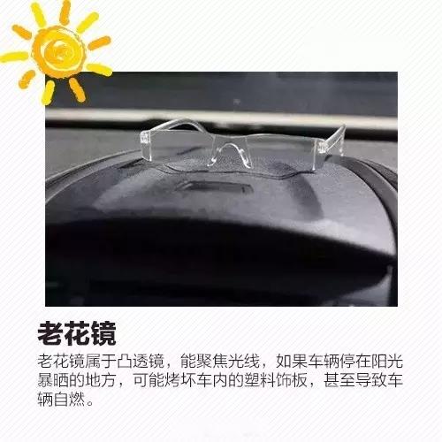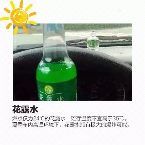 摘要:经过几场春雨的洗礼,让我们“爱恨交织”的夏天又来了,平时开车不注意的一些小恶习这时也会被无限地放大成为陋习,威胁着我们的安全。除此之外,我们在平时习以为常的一些小习惯,也会被无限放大,威胁着我们的健康和安全。炎炎夏日,车内温度在阳光直射下很容易达到60℃以上。车内的打火机、充电宝、香水可能发生爆炸;老花镜长时间聚焦光线,引起火灾;瓶装水会析出有害物质;碳酸饮料可能膨胀爆裂…平时随意放车里的物品,很