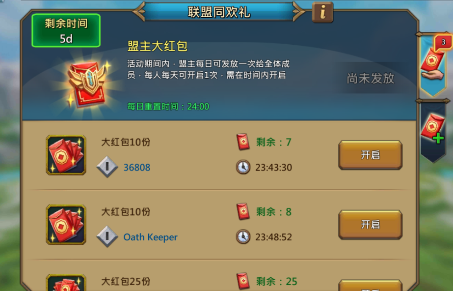 每当盟主或成员发放红包时,所有联盟成员的领地里都会出现绚烂的红包雨特效。王国纪元所有英雄