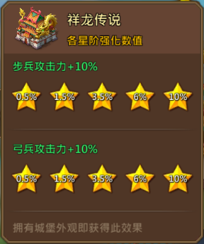 除了地道的中国风设计,这款城堡外观的属性加成也着实吸人眼球,是游戏当前属性最强大的城堡外观之一。