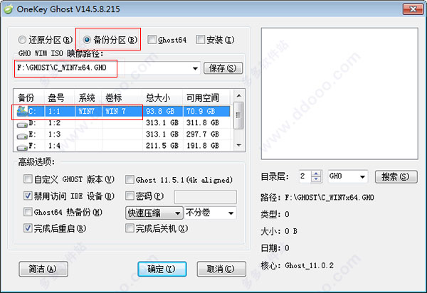 2、程序默认对当前系统所在分区进行备份、还原操作,可选择其他分区