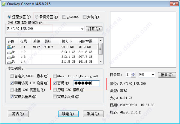 13、还原时如果忘记 GHO镜像文件的密码,输入 OK 即可破解