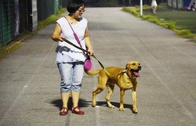 记者首先将实验用手环绑在了小Q身上。随后,让狗主人何女士领着小Q围绕操场溜了一圈。结果一圈过后,记者手机上的数据却显示的是:270步、190米。明明走了一圈,数值却打了对折。记者随后再次跟随小Q走了一圈,同时随时注意手机上的数值变化,结果却发现,虽然小Q的运动幅度很大,但是由于摆动频率过快,重心变化较小,真正显示到手机上的有效步数大打折扣,因此才最终影响到了最后的测算距离。