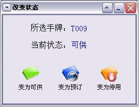 4、手牌状态:功能此项操作可手动修改处于非占用状态的手牌状态为”可供”、“预订”、“停用”等状态。