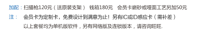 4.会员卡可以使用条码卡、磁条卡、ID卡、IC卡。