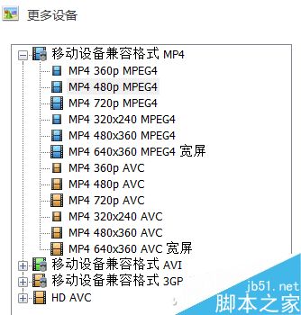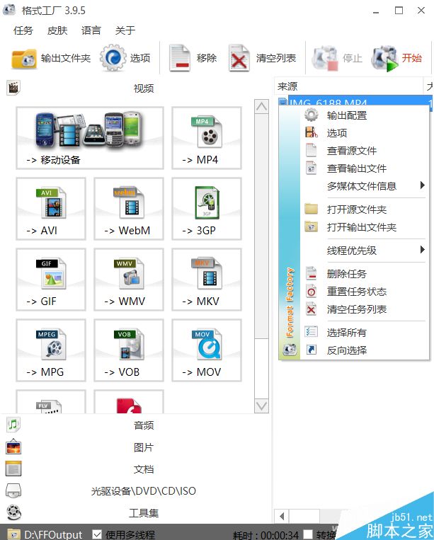 以格式工厂为例,首先在主界面上选择合适的格式,如果你不好判断,直接选择“移动设备”即可。