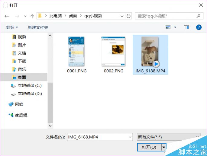 在打开的界面中选择左下角的文件夹图标,并选中刚才经过格式转换的视频。
