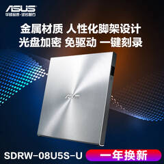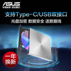 华硕(ASUS) 8倍速 外置DVD刻录机 移动光驱 支持USB/Type-C接口 (兼容苹果系统/SDRW-08U9M-U)-银色