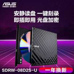 华硕(ASUS) 8倍速 USB2.0 外置DVD刻录机 移动光驱 黑色(兼容苹果系统/SDRW-08D2S-U)