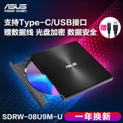 华硕(ASUS) 8倍速 外置DVD刻录机 移动光驱 支持USB/Type-C接口 (兼容苹果系统/SDRW-08U9M-U)-黑色