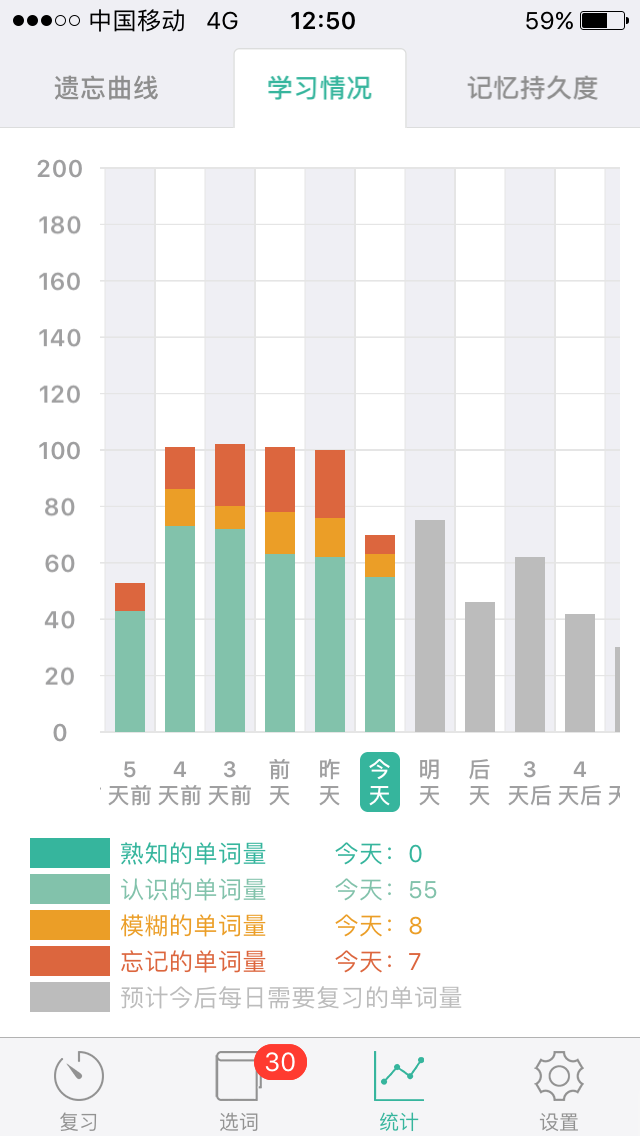 2:我觉得最有优势的地方是他有一个记忆曲线,能让从中发现自己哪个单词记得不牢靠,从而第二天他会自动地把这单词加入复习单词行列,新单词和老单词交替学习,效率很高。