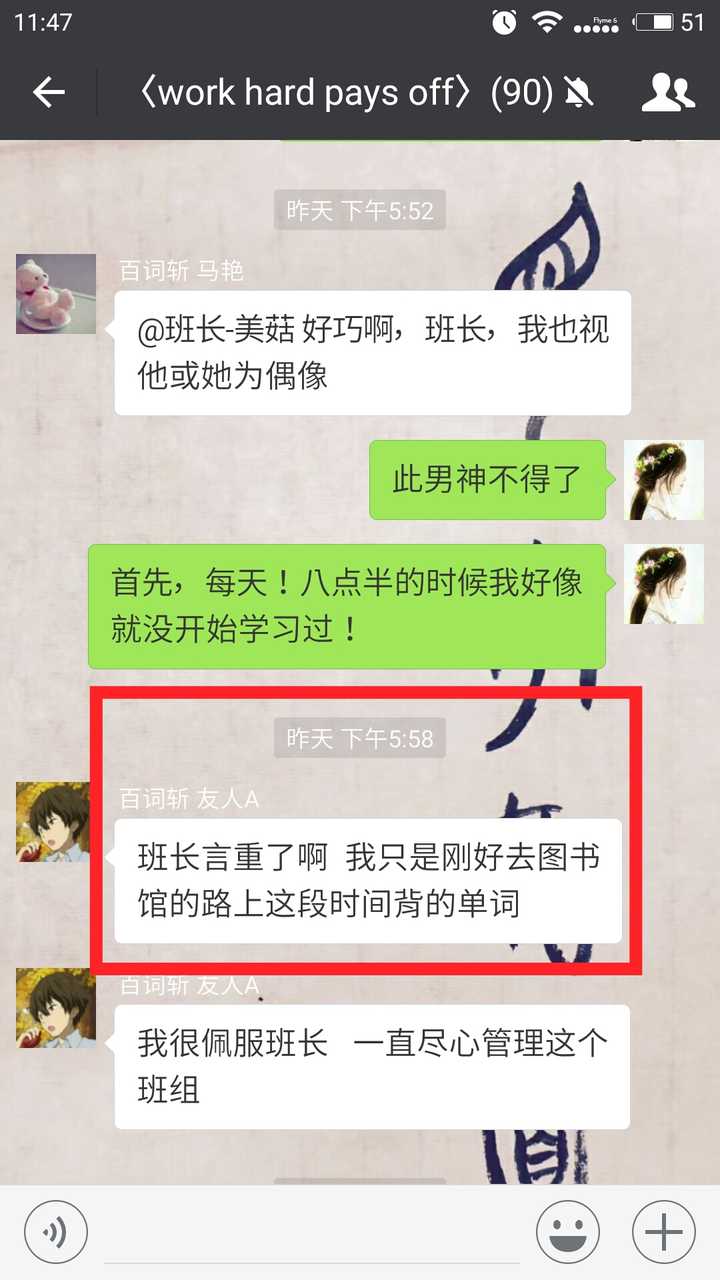 因为知米的小班当时30人吧,有10+个同学突然提出说以后用百词斩不用知米了,我也尝试了一下,图片挺有意思的,我更喜欢手绘的那部分。我开始用百词斩的时候还只是自己背,并没有小班。后来发现有百词斩的小班,就去联系了百词斩的新浪客服吧,小哥哥很有耐心的,最终让我建了一个属于我们小圈子的班级。加的人太多了,强迫症总想把不背单词的人踢出去,搞得我好慌乱,就让小哥把人数限定在200了哈哈。百词斩的缺点主要是图片占用内存画的流量都比较多啊,而且没有夜间模式。最喜欢的问题是任何时候遇到它背够了就可以“斩”了它,知米却不可以的。