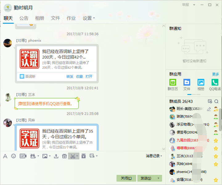 F 有小班,相互监督,但是现在不能及时弹出对话框,所以我建了微信群。居然有全国小班排名,当初看的时候吓一跳。